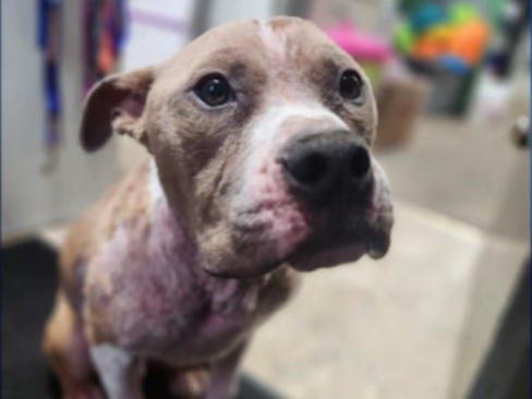 The dog, now named Jelly Bean, is an intact male pocket pitbull.